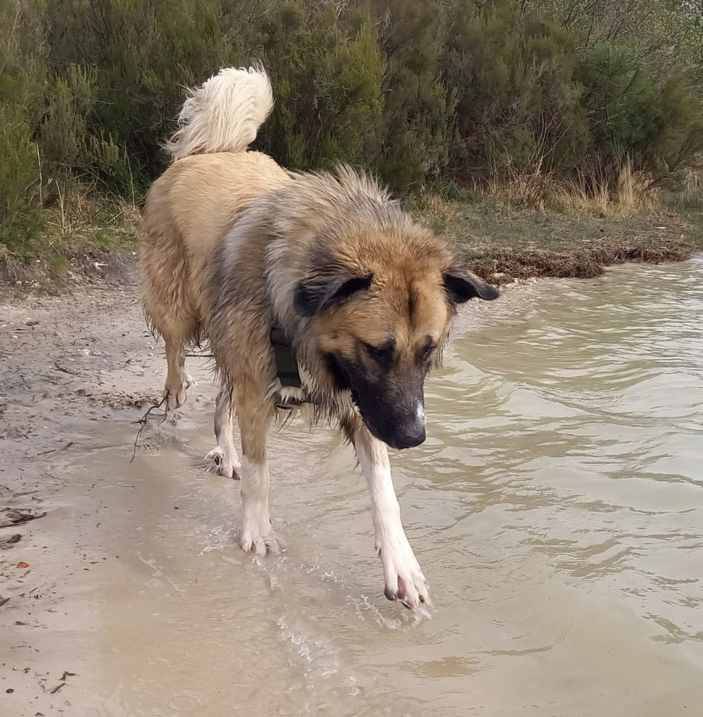 « Petit » chien de race inconnu (Estrella x Kangal?), Darkhan me pousse à aller encore plus loin dans ma compréhension du chien. Un caractère bien trempé, de forts attavismes, une farouche envie de liberté et d’exploration, un côté décisionnaire qui rend difficile pour lui le fait de s’en remettre à l’humain font de lui un chien à part, un chien-chat: sensible, câlin, indépendant, intransigeant, exigeant, réfractaire à la contrainte, très déstabilisé par les fluctuations d’humeur et surtout, pas du tout intéressé par le travail avec l’humain, peu importe la récompense à la clé… presque un animal un peu sauvage qu’il faut apprivoiser chaque jour, mettre en confiance et convaincre pas à pas de coopérer. Une vraie leçon de vie, tout autant que l’a été mon amour de June mais sur un tout autre chapitre. Aujourd’hui, je n’échangerais Darkhan pour rien au monde.